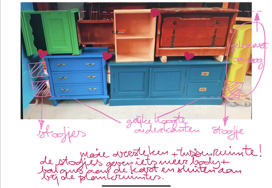 Een Samengestelde kast wordt niet eerder in de verf gezet voordat designer Louise Cohen het ontwerp heeft bekeken en goedgekeurd. Vervolgens wordt de kast verdeeld in hanteerbare stukken die snel en makkelijk zelf te monteren zijn. Daarna worden de binnen- en buitenkant gespoten in de Kleurfamilie van je keuze met C2C biobased krasvaste, UV bestendige watergedragen project lak.